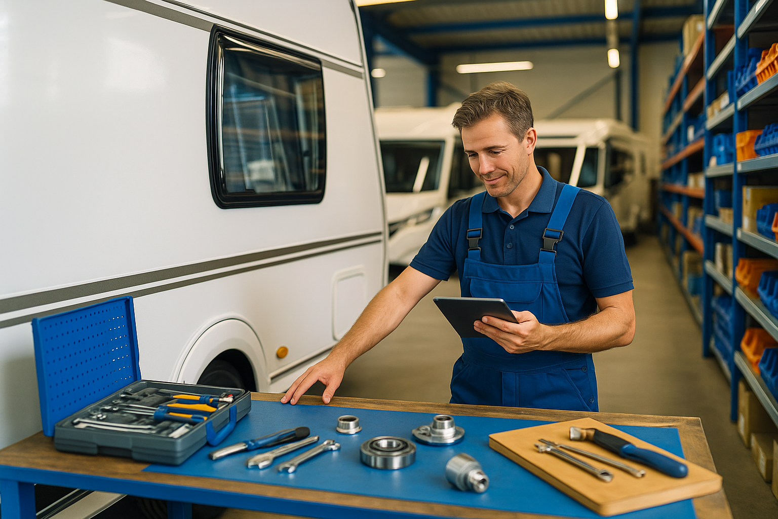 Darüber hinaus profitieren Sie bei uns von einer digitalisierten Annahme- und Terminplanung, die Ihnen bevorzugte Zeiten für Werkstatttermine ermöglicht. Unser einzigartiger Ersatzteileshop mit sofort verfügbaren Caravan-Bauteilen ist bundesweit eine Besonderheit und spart Ihnen wertvolle Zeit bei Reparaturen oder Nachrüstungen.