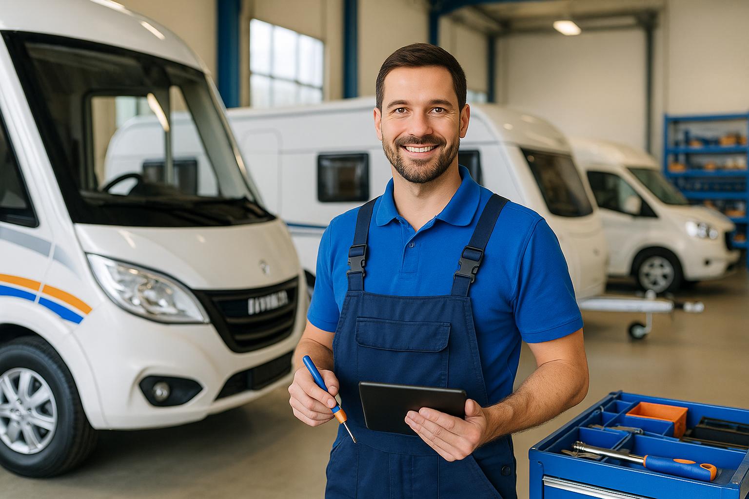Die Caravan Werkstatt ist auf die Reparatur, Wartung und Inspektion von Wohnmobilen und Wohnwagen spezialisiert. Hier führen erfahrene Fachkräfte sämtliche Serviceleistungen durch, von der Elektrik über die Fahrzeugtechnik bis hin zur Pflege von Innenausstattung und Zubehör.